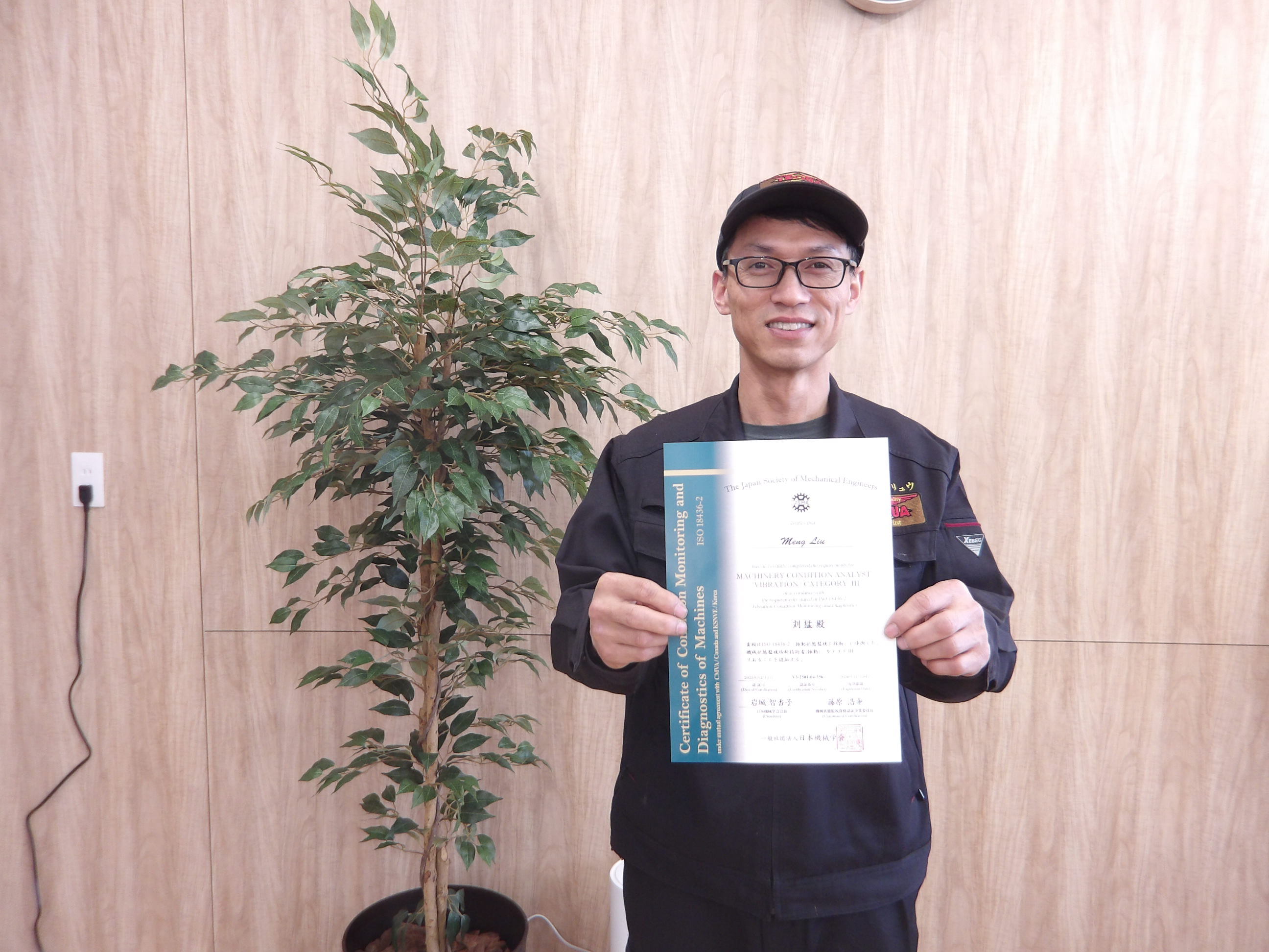 オフィシャルブログ 刘 さんが ISO機械状態監視診断技術者(振動)カテゴリⅢ認証試験に合格!! 2026年1月23日 tequa 刘 さんがISO機械状態監視診断技術者(振動)カテゴリⅢ認証試験に合格しました 回転機械の振動・騒音問題、メンテナンスについてお困りの方は何でもご相談下さい!